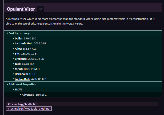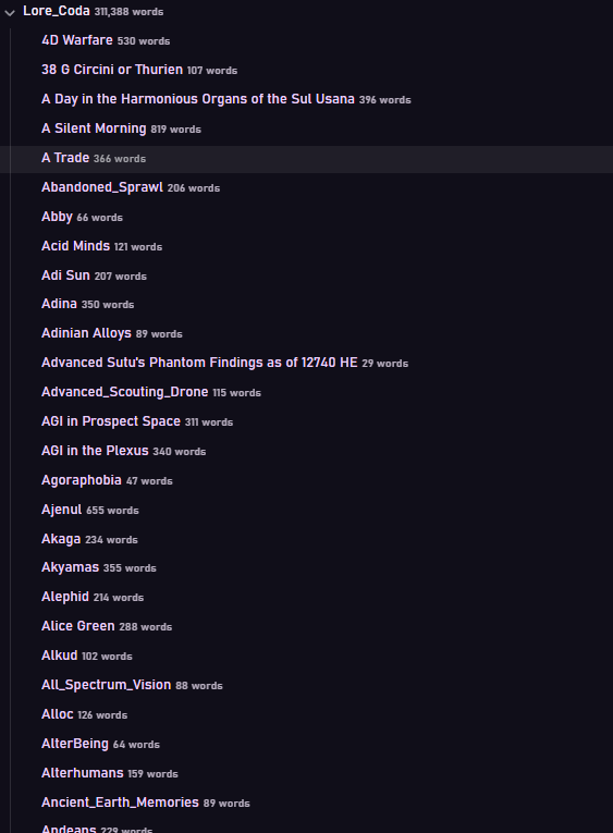 The advantage of this is not clear at first glance, but the basic gist of this is that it makes other ideas ive had like 'catered knowledge' for different players in a game or being able to just pull information from the vault much quicker even if it is much more reliant on the tagging/metadata. A lot of linking and editing is underway on the vault, but the end goal of 'context' based vaults is back on the range of possibilities. Having a spoiler free online vault for common use or a portfolio vault with the best articles to showcase are just a couple examples of how the vault may get used.